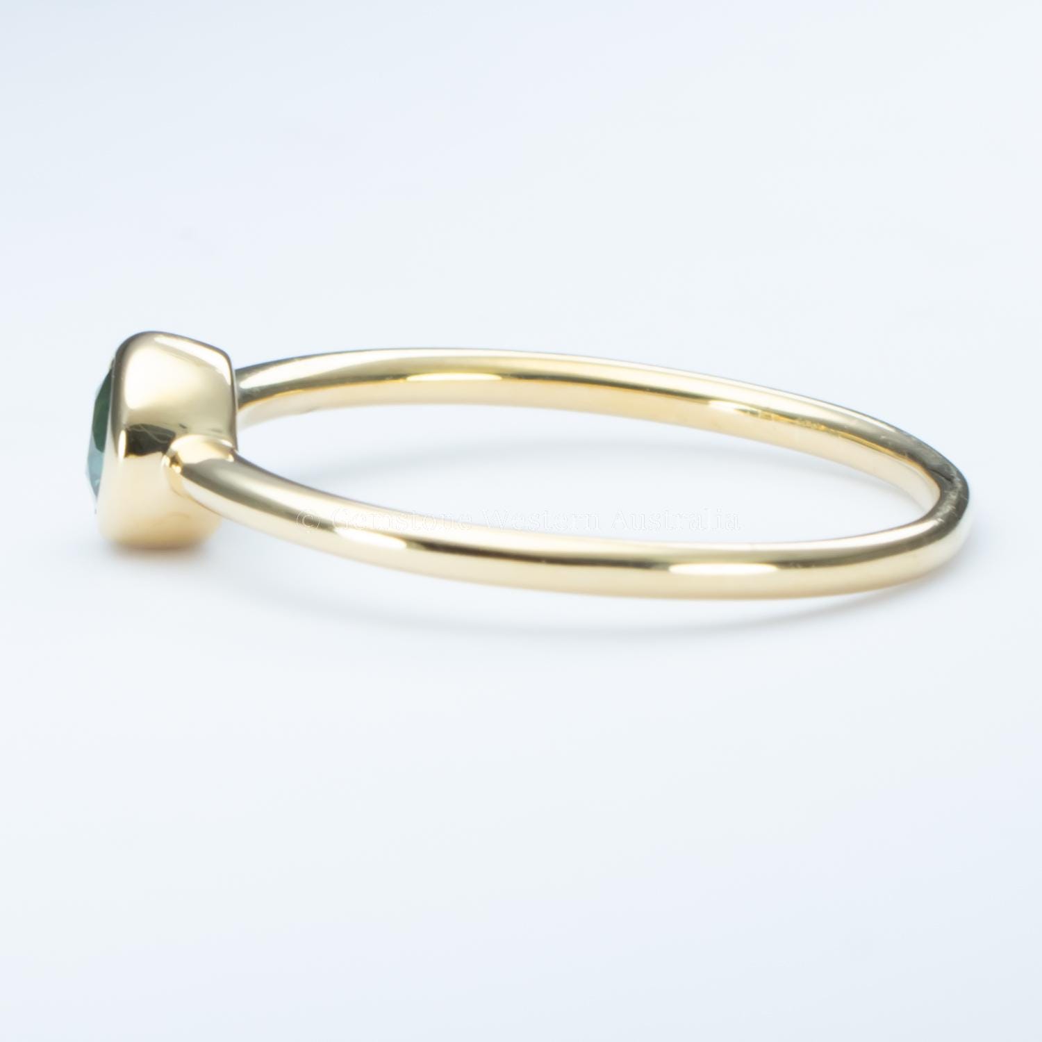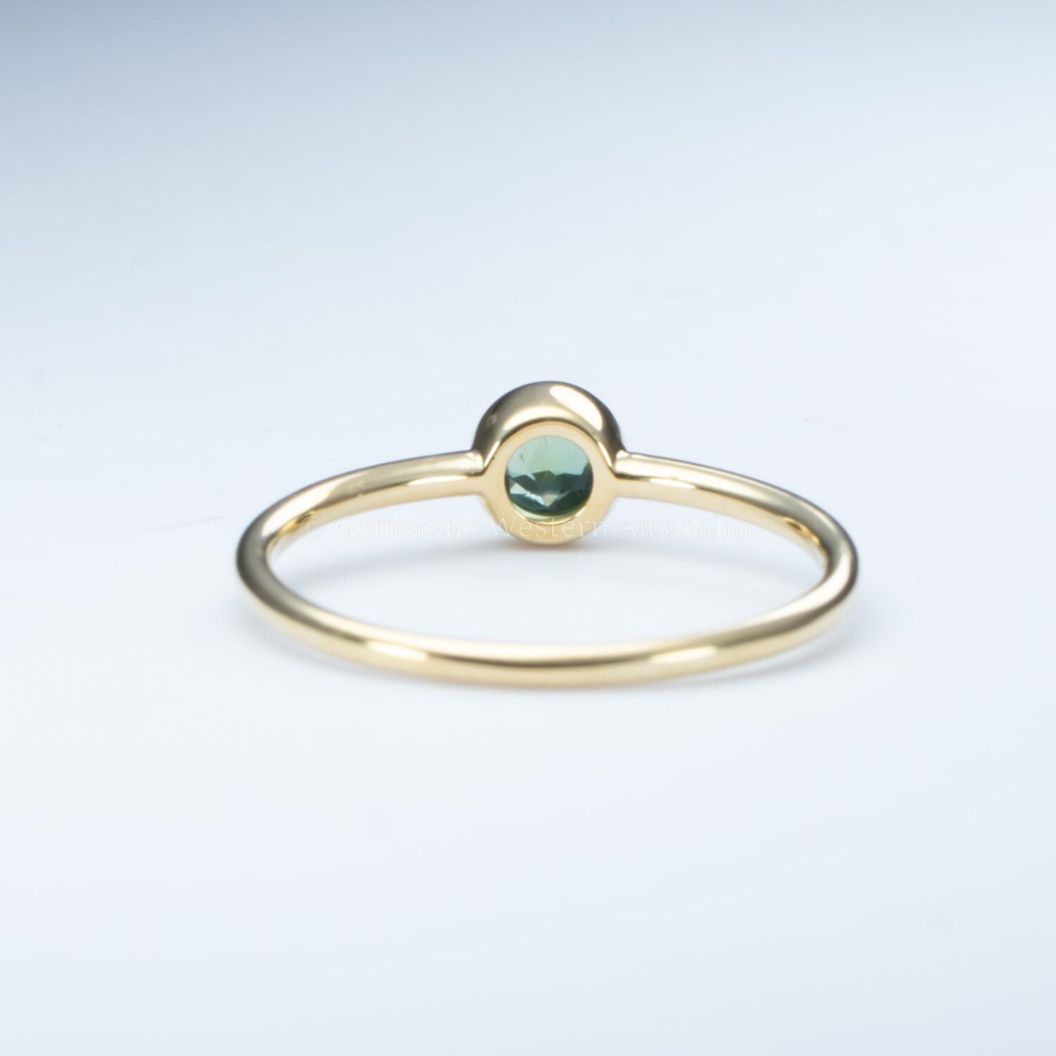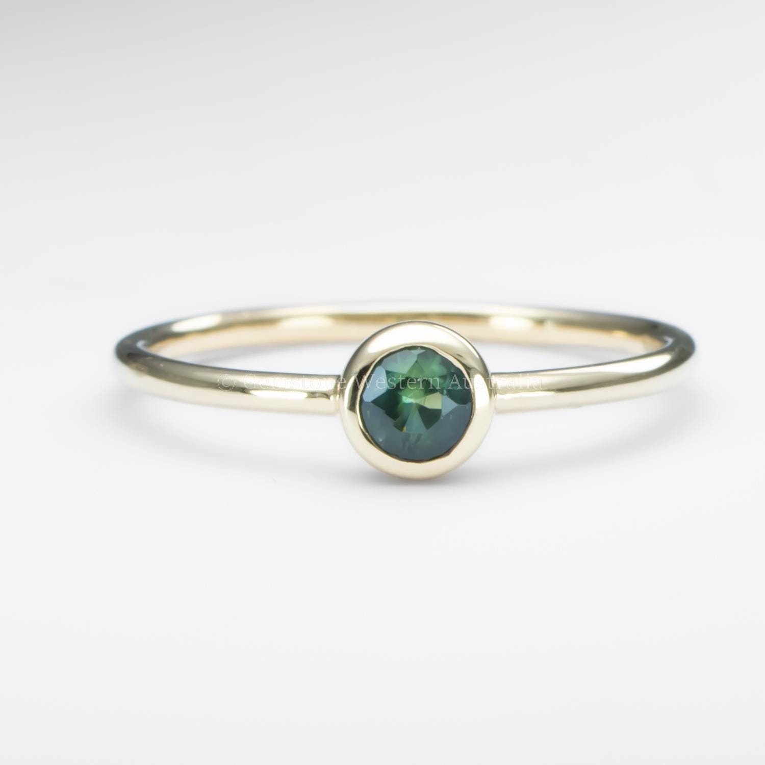 9K Yellow Gold – 0.26ct Australian Teal Sapphire, Round Cut | Dimensions: 4.0 x 2.1mm.