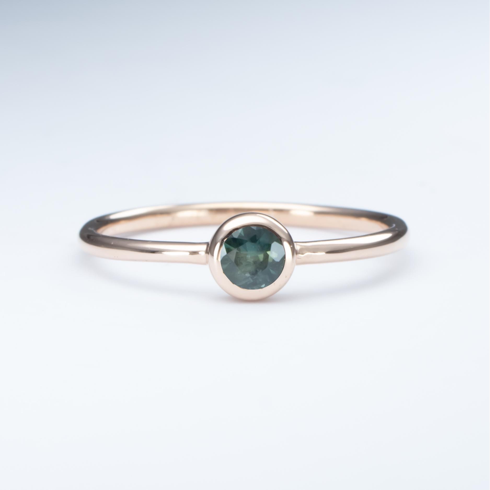 9K Rose Gold – 0.27ct Australian Teal Sapphire, Round Cut | Dimensions: 4.0 x 2.3mm.