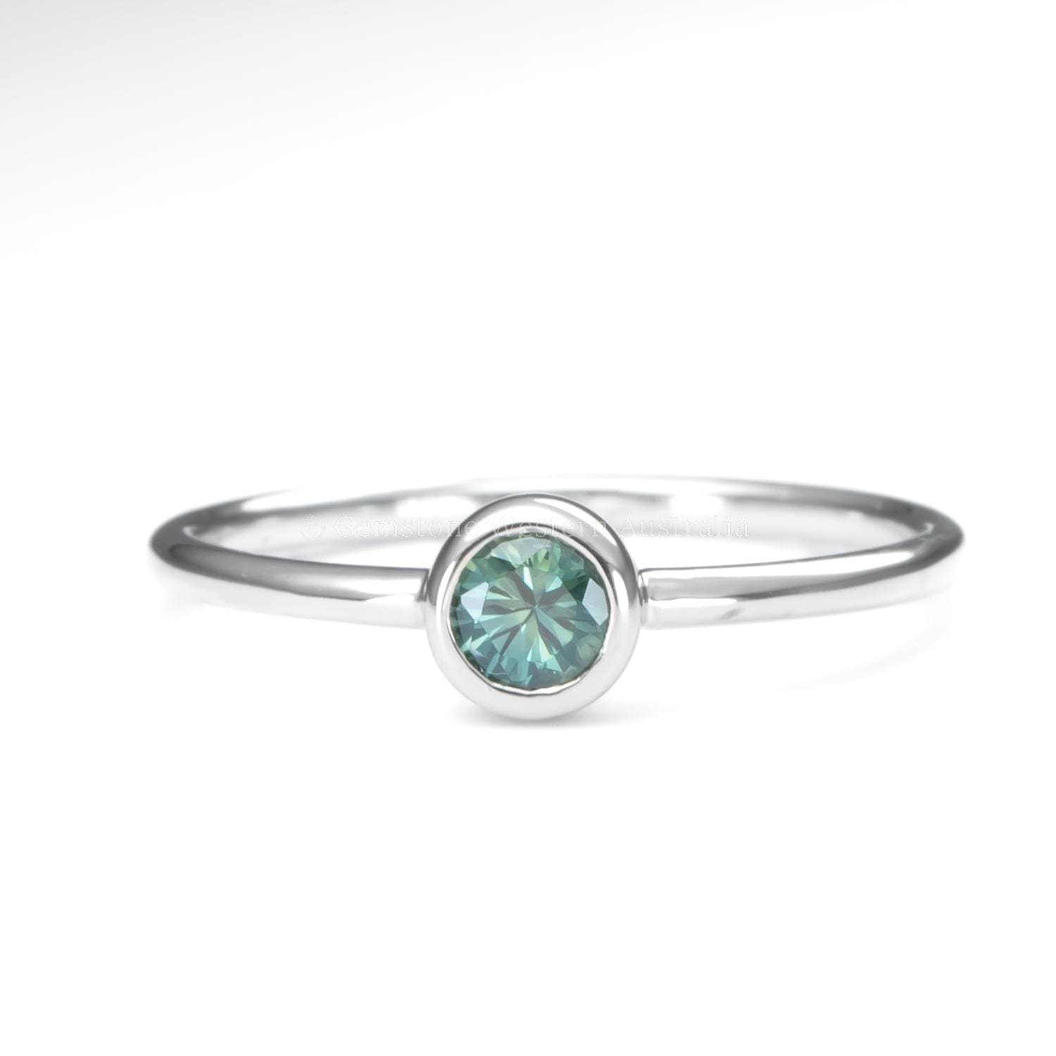 9K White Gold – 0.29ct Australian Teal Sapphire, Round Cut | Dimensions: 3.8 x 2.7mm.