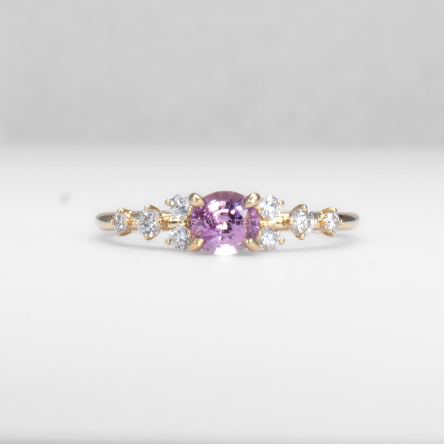 Natural pink sapphire and diamond gold ring featuring an unheated oval cut pink sapphire set horizontally in an elegant east–west orientation. Weighing 0.50 carats, the centre stone brings a soft, luminous colour that feels both delicate and contemporary.