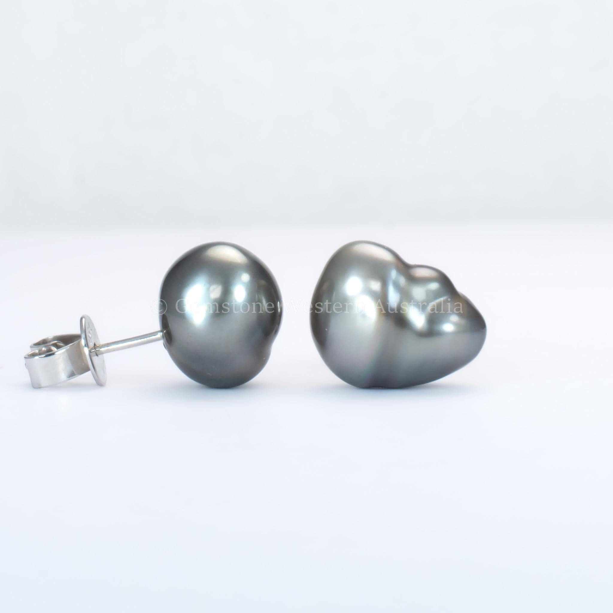 Baroque Tahitian Pearl Stud Earrings in White Gold