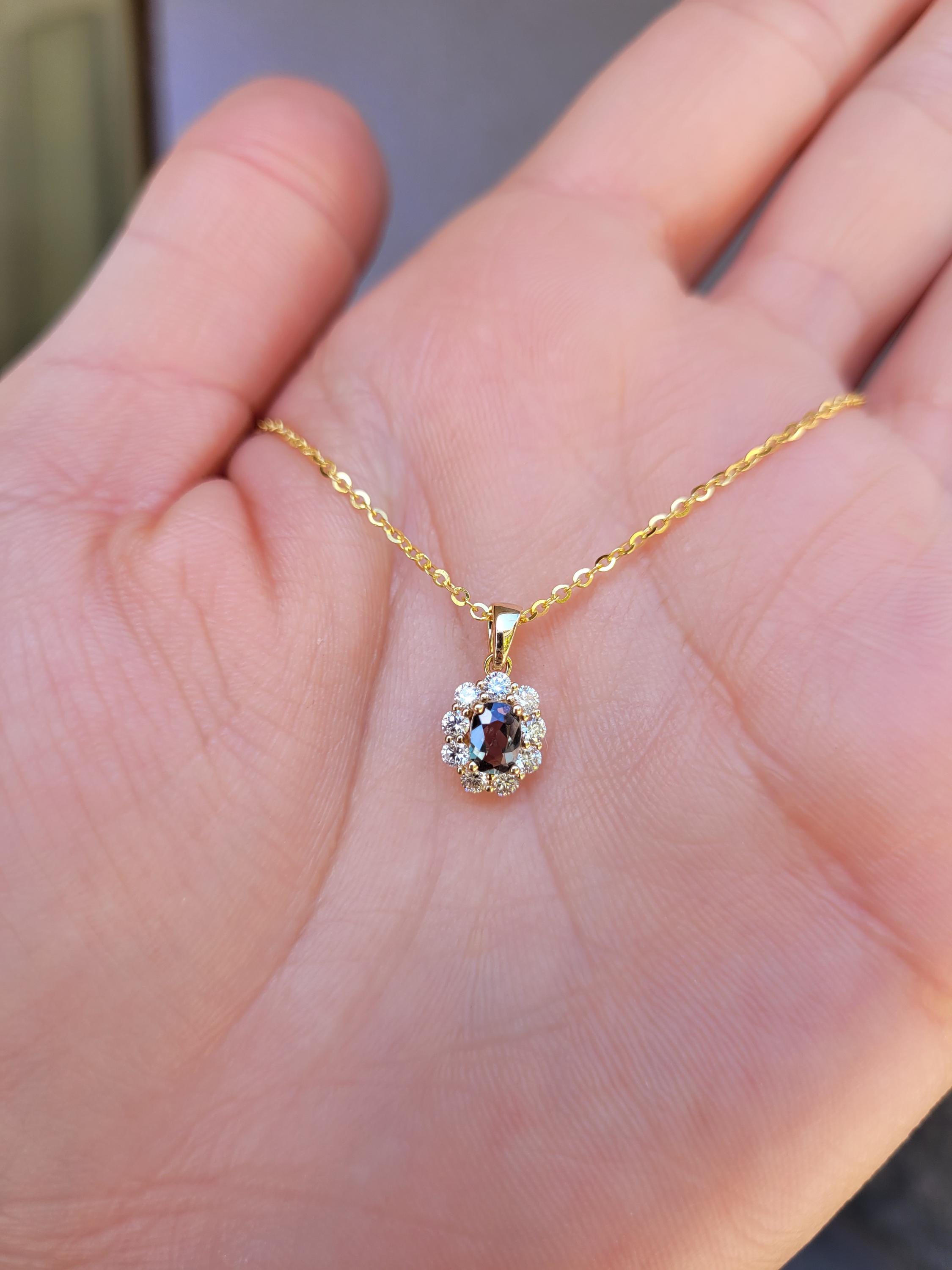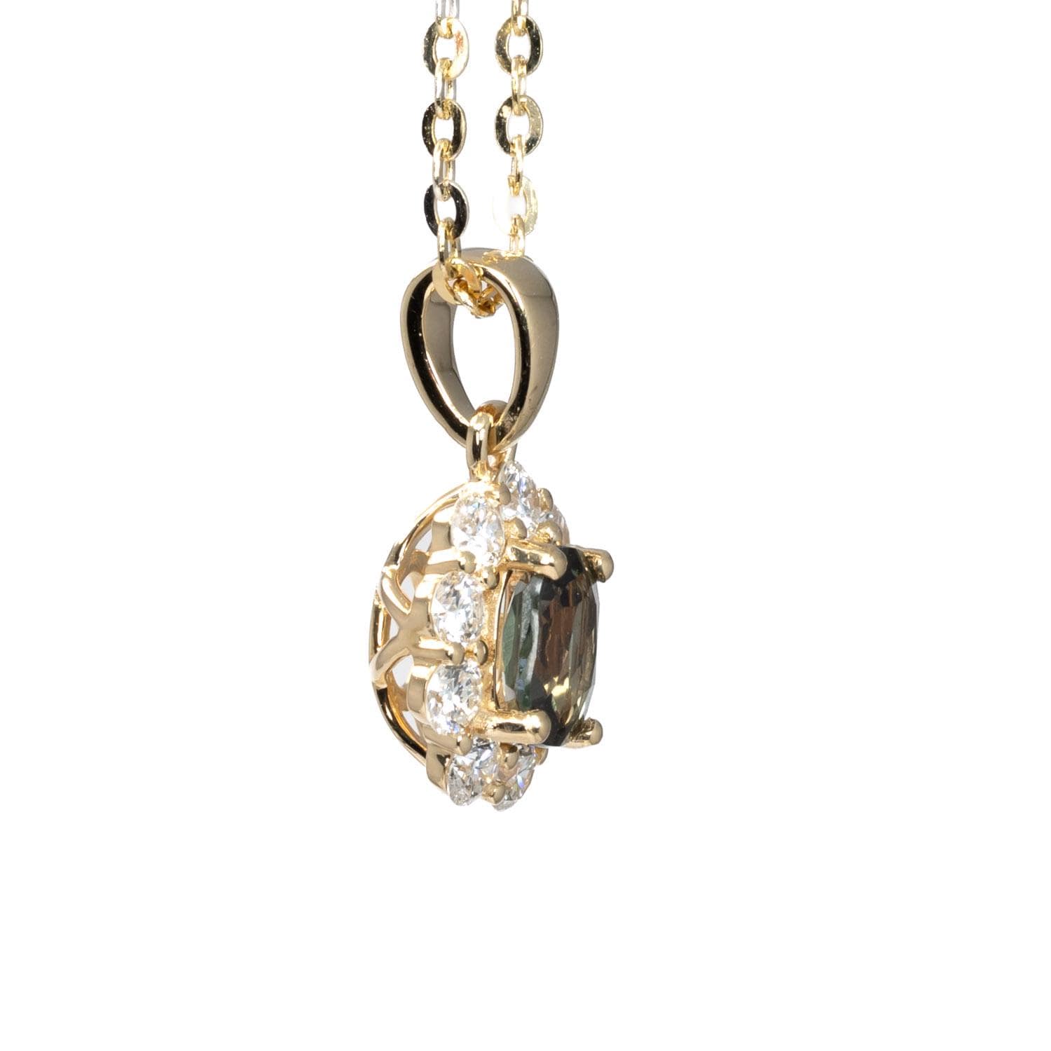 This natural alexandrite pendant features a 0.34ct cushion-cut gemstone, selected for its colour shift and refined presence. Set in 18K yellow gold, the design is warm, elegant, and perfectly suited for everyday wear or layering with other pieces.